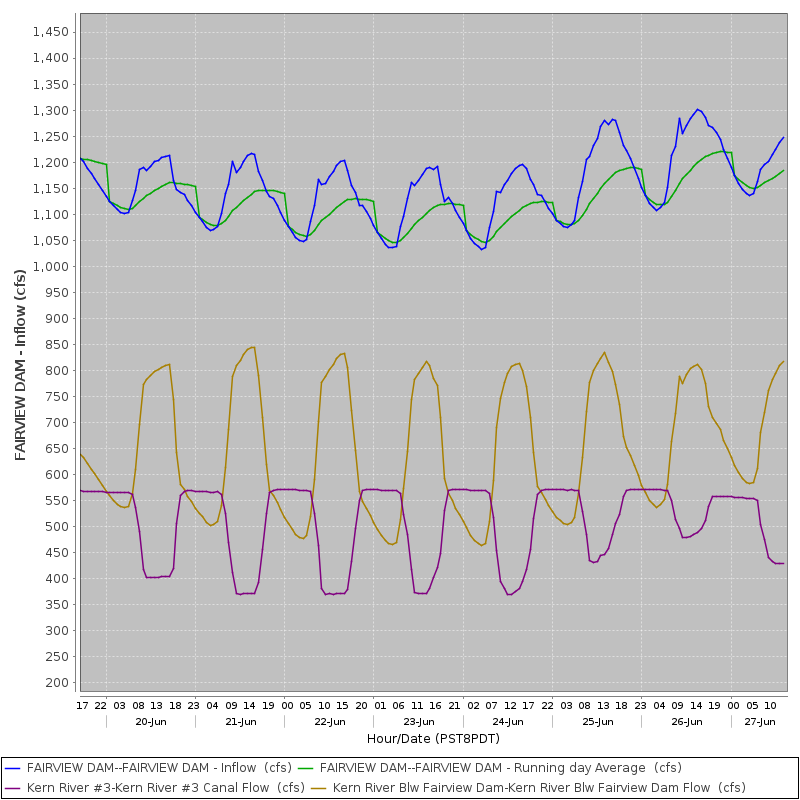 Fishing Report - Rich Arner - 05/11/18 The Upper Kern peaked at 1,800 cfs yesterday and we rescheduled our club mentorship outing to early June when the catching will be better and the wading much safer. Indications are that flows will slowly decline and in a week or so they should drop below 1,000 cfs above Fairview Dam and below KR3 and on section 5 flows below 200 cfs should open up some pocket water to waders on the low flow section. Stocking will resume just before Memorial Day. River temps will be rising quickly and wet wading will be possible again for a short time. We expect Upper Kern River water temps to become lethal on the 20 mile section well before the 4th. Section 5 flows http://www.sutronwin.com/scedison/tw/jsp/