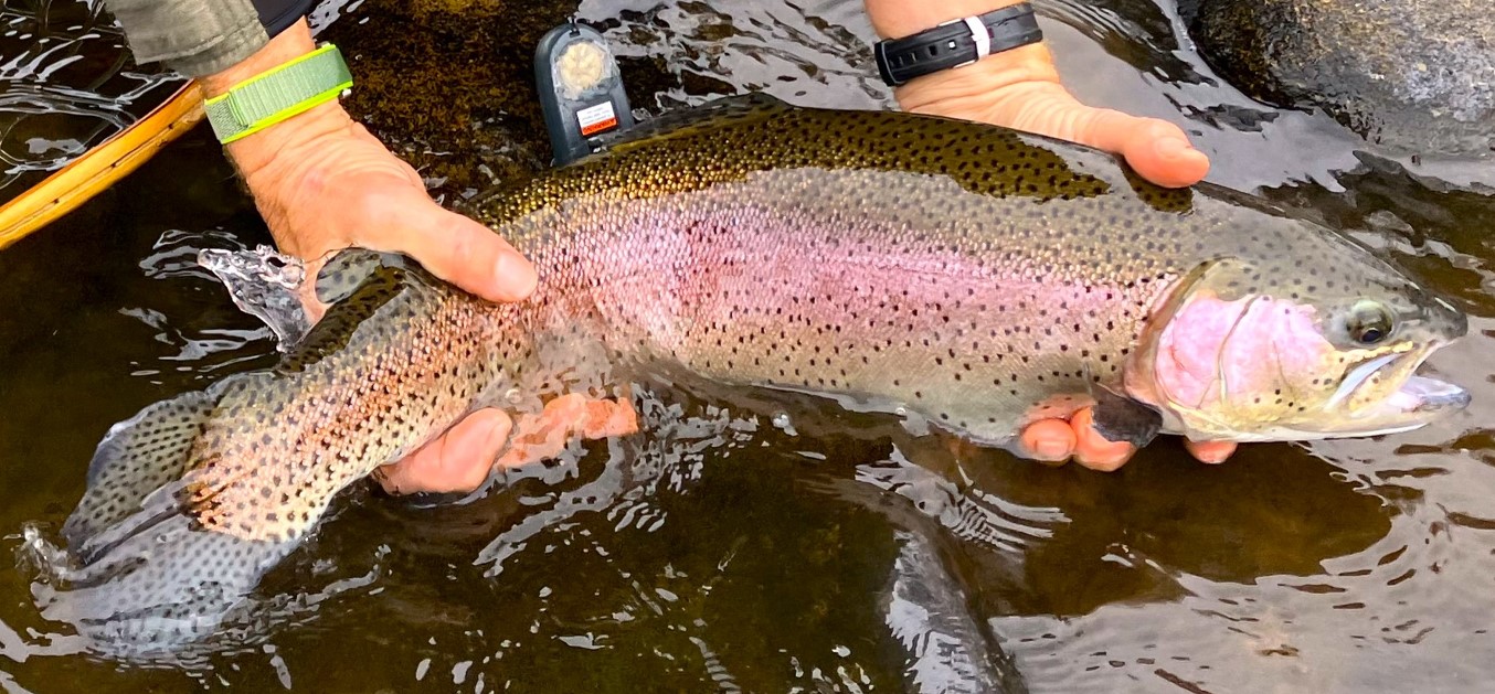 Fishing Report - 07/02/24 Finally flows on section 5 stabilized below 300 cfs for 2 straight days so I made it a priority to fish during the best 3 weeks of the year. The Upper Kern did not disappoint like clockwork once high flows recede each year, but there is concern. More on that later. I left the Bako early in the morning with a record setting heat wave on the way. For the next 10 days +110 degrees are forecast. Kernville will likely be just under that. I was in the water around 8 am and hooked up right away. Not many cars in the pullouts and no one fishing Riverside Park in Kernville. A clear indication likely no stocking had occurred this week yet. I strung up my reliable set up with a #12 Foam Stonefly on top (yellow belly a must), trailed by a #12 BH Arnerd and ten a #16 BHFBPT. The first nice piece of water yielded a spunky rainbow that slammed the stonefly but missed the barb. I recasted and the Arnerd was grabbed quickly. The first rainbow of this special 3 week window was in the net. I gave the slot 4 more casts and no grabs so I moved on. This time of year you often can find rainbows in nearly every piece of slow water that is deeper than your waist if you know where to wade. Many parts of the Upper Kern are hammered as soon as the stocking truck is spotted and soon transferred to a skillet. However, during high flow periods these planters are whisked downstream with the current and over the course of a few months trout find lies all over the river. The ones that make it away from most harvesting fatten up and lengthen for us to enjoy who are willing to do some aggressive wading. Then the magic happens. I spent the next 3 hours covering a 1/2 mile of water landing 29 rainbows with several 16" to 18". 90% on the Arnerd. Then my bliss was abruptly over when a beautiful 18" rainbow went belly up in my net after a quick fight and fast release. I spent time reviving the trophy and it slowly made it back to its favorite rock shelter. I took a water temp. It read 76 degrees. Yikes! At 11 am on the lower half of the 11 mile low flow section below Fairview Dam water temperatures are now lethal for rainbows? I felt bad that I did not take a temperature when I first started at 8 am because reports were that the river was 64 degrees just a few days ago. I stopped fishing and headed up toward Fairview Dam to see how hot the river was up there. When I arrived I was glad to see that the river was 68 degrees up there and started fishing again with great results but knew in just a short time river temperatures were going to go above 70 degrees. So I quickly landed 6 more rainbows for a total 35 in the net and at least 20 LDR's (long distance releases). In four hours of casting I averaged almost 9/hr. This is pretty typical for post melt fly fishing if you work hard. There is a lot of evidence that the near normal snow pack estimates made back in April likely overstated the actual amount of moisture accumulated in the Southern Sierra. Sadly air temperatures are ramping up and Upper Kern flows are continuing to drop and likely will peter out sooner than we anticipated. This means much of the 20 mile section will soon be lethal habitat for trout for the rest of the summer. Make sure you pay attention to your water temperatures when you fish. If water temperatures exceed 70 degrees it is time to go home or find water at much higher elevations in the Kern drainage. As many of you know Hoot Owl restrictions are placed on waters in places like Montana that have done wonders for trophy waters there. Some day that may be a realty for the Upper Kern but for now we can only hope. Here are the CDFW Hoot Owl guidelines you can view https://wildlife.ca.gov/News/Archive/cdfw-recommends-hoot-owl-practices-for-fishing-inland-waters-during-drought I also learned a little more on why Kern River flows between Fairview Dam and KR3 were raised up and down last week. Lois Henry, from SJV Water did some investigation with me and we found out that SoCal Edison must provide supplemental whitewater flow releases when the inflow at Fairview Dam ranges from 700 cfs and 1100 cfs. It would be good for public safety if SoCal Edison would communicate when they decide to provide these supplemental flows and for what duration. At this time inflows are over the 700 cfs low limit but they aren't providing supplemental flows? Wonder why? If not then why not make that public on a website or some other means. SoCal Edison used to have a flow phone number you could call to hear real time flows that number no longer seems to work. Hopefully the new re-licensing agreement will address this.